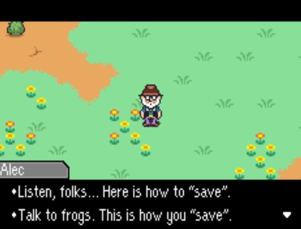 And that’s part of it, too. I want to play Mother 3 in a specific way so that I am encouraged to write about it in a specific way. Video games and how we communicate about them is, to me, still developing in an exciting way. I have tried in the past to play through EarthBound or Mother 3 while taking notes so that I could write essays or article about the series. None of these essays ultimately came to fruition, either, again, out of my own laziness, or out of a lack of resolve, but I haven’t lost any sleep over it. The way we talk about games might be most fun when our methods account for the unique way games present themselves. If I truly want to play the game and write about it, why not play frog by frog? Why not play patiently and give myself time to explore, time to play?