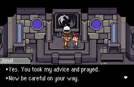 Unfortunately for me, a Mother 3 prize fighter in training, that’s all the fighting I get to do for this frog. After that fight, I finally find the source of the knocking, which, as I pointed out earlier, is Matt knocking on Isaac’s door. I also check a nearby sign that tells me to beware of poisonous snakes, but it also adds:
