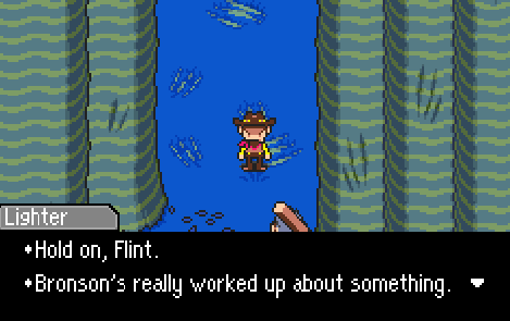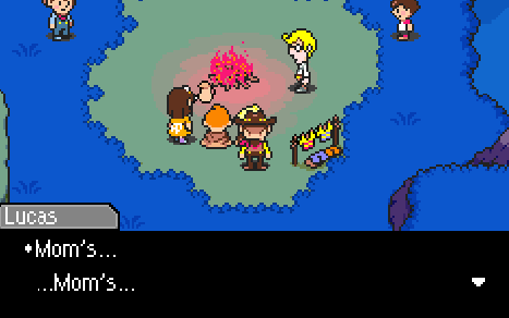 My reaction wasn’t deep sadness, or anything, not an emotional reaction to seeing my mother’s name replace Hinawa’s. I felt uncomfortable because of the strange emotional range I had to occupy. I felt forced to experience the emotional range more intimately because my mother’s name replaced Hinawa’s. I think what I’m getting at here is, this scene isn’t just sad. When Abbot tells Flint to pull it together, when Bronson runs a good news/bad news routine to tell someone about their wife’s death… I think we get an amazing glimpse at who the Tazmilians are, through their innocence, and at who Flint is, through his emotional reaction. Flint, Lucas, and Claus are all irreparably different from everyone else, now.