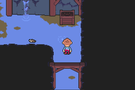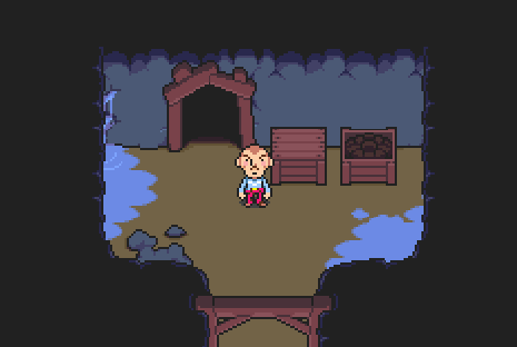 Even though it’s an uncomplicated, straight shot through, I still like the setting. It’s a dank tunnel with some even danker leeches in it. I like the return of “Cautiously,” the anthem of all caves. And sure, this passage isn’t some kind of huge secret or anything, as we can assume that Nippolyte probably uses this tunnel all the time (and maybe dug it himself, given the shovel and pick ax at the other end), but I still love that it’s a secret, hidden tunnel underneath the graveyard. What else could Tazmily be hiding? What other secrets can be found in this town, hidden behind unassuming bookshelves?