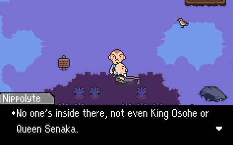 If you continue talking to Nippolyte, he’ll tell you that not only is the castle impossible to get inside, but also the royal family doesn’t even live there anymore. King Osohe, Queen Seneka, and even the princess, who he describes as “one hell of a princess, quicker than a monkey and stronger than a bear,” have all abandoned the castle and its grounds, leaving the whole place empty.