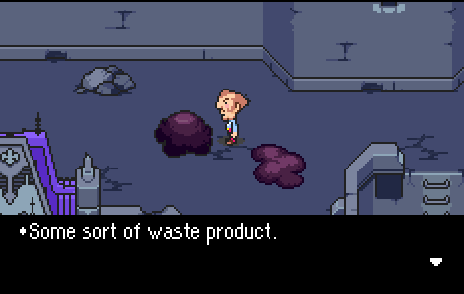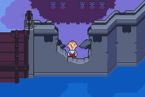 Honestly, I can’t believe I’ve never noticed this before, but these are the droppings that fell from the Pigmask Airship. Before writing this frog, I decided to Google a bit about Chapter 2, because when I first saw the pods fall from the ship, I wasn’t sure what they were. Were they Zombie pods? Were they escape pods of Pigmask soldiers? In my previous Mother 3 play-throughs, I had never inspected these, or at least I don’t have any memory of doing so. I think because of the limitations of the Gameboy Advance’s graphics, I assumed these were craters in the structure of the castle, not piles of waste on the ground.