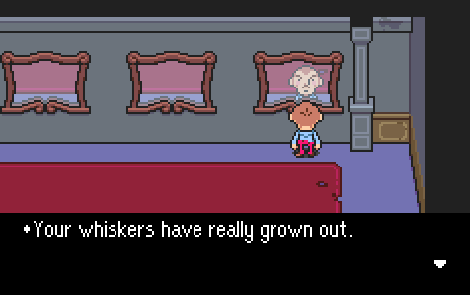 When people ask me what kind of game is Mother 3, mostly I want to remember moments like this: moments where little mice say that I’m a life saver. Moments where, right after defeating a difficult boss, I crash on the couch for a quick snooze. Moments where my heart warms up by a couple degrees. Sure, I’m in the middle of a haunted castle, but when you’ve got a mouse on your side, a sofa under your back, and a warm feeling in your heart–what else would you ever need?