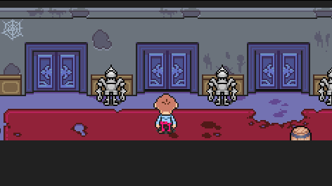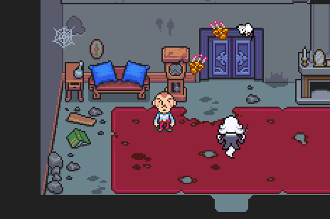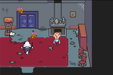 One of my favorite details about these enemies that, outside of combat, they appear only as rocking horses, so you don’t know that there’s a ghost on top until the battle begins. However, if you look at the mirror while they pass by, you can see the outline of the ghost as the little rocker advances toward Duster. Similarly to the Artsy Ghost stretching itself out of the painting, I love this small touch to a basic enemy, bringing both the environment of Osohe and the enemy itself to life.