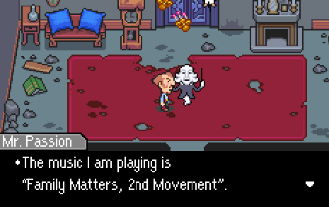 Though, to be fair, I don’t think Mr. Passion implies that all of these songs are his original work. Maybe he’s simply honored to conduct such music. Maybe the Nowhere Islands has record of all of the classical music greats, or maybe Mr. Passion himself, in the world of Mother 3, is the one who wrote these pieces.