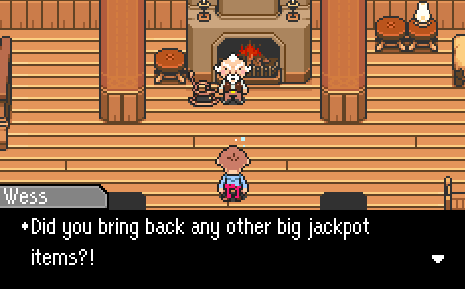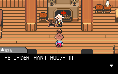 Either that, or all young people in Tazmily like to “Wess up?” to Wess, which is just as well. Wess might be a jerk, but I like to think he can take a joke every now and again.