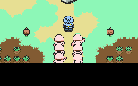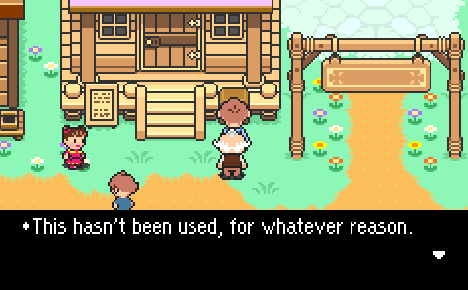 I think what I’m mostly getting at is saying “good eye” to Itoi. It would’ve been easy to have ??? come into town and start slapping uniforms on everyone and turning them into workers, but instead we have time to see Mike working in the Bazaar and passing out dirty cookies during a forest fire. We see Wess, with his hidden powers and ancient knowledge, who may be one of the most powerful villagers of all, even if no one knows it. We see Alec trying to lead Flint back into the light, so that the pitch blackness does not consume his heart. But then we see Pusher’s comment about the old folks home–subtle, suggestive, and slight.