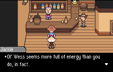 Because I knew I’d have so much to say to the townsfolk, I also wanted to make sure I’d have enough space to talk about Wess, Duster’s father. Wess joins your party in the same way Thomas, Fuel, and Alec did: you can’t select his actions, but he’ll still fight alongside you. So, let’s give a warm welcome to Wess, our soon-to-be newest party member!