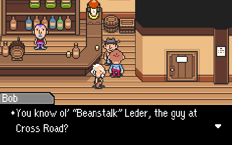 You know, like I’ve said a few times, something about Bob is speaking to me on this playthrough. For all intents and purposes, he’s just a random NPC, but I can’t help but be interested in him. I think it’s telling that Bob seems to drink and wonder about Leder. I thnk it’s telling that Bob seems fascinated by stories and local myths. Even if Bob is dimwitted, I think many Tazmilians know, or at least have a latent sense, that Tazmily is more than meets the eye. They might not know exactly what it is they’re trying to say, but they can tell that something is almost expressible…