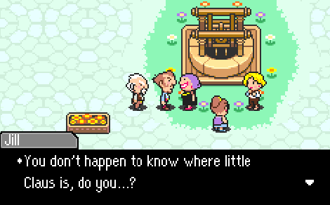 I’m not so sure. During my conversation with the Gossiping Women, even Jill, typically the sassiest of the three, primarily wanted to talk about Claus. I mean, yes, Lisa told Wess that he was looking as shabby as ever, and Brenda asked the thieves if they were finally going to fix their nocturnal lifestyle, but, like I said wayyy back in Frog #3, the Gossiping Women are like the little nucleus of Tazmilian public opinion. You can usually get a sense for how the town feels from these women, and I think this is a decent example. Even if people don’t want to admit it, there’s a darkness in the corner of their minds. I think many Tazmilians still ask themselves the questions, “What do we do now that Hinawa is gone? And where is Claus?”