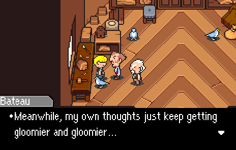 Be honest: when you talked to Bateau in Chapter 1, did you see him as the type of character who, just a single chapter later, could be going through a depression? Silly, goofy Bateau? The Bateau who became puzzled over the symbolism of sunflowers? I know I asked these same questions last frog, but really: did you see something like this coming?