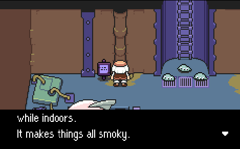 By the looks of these slimes, you might think Salsa’s encounter with them would play out more like a mini-boss battle, but it’s nothing too bad. Actually, a nearby sign tells you everything you need to know: don’t know running bombs indoors! Which, of course, means we’re going to throw some running bombs indoors so that we can win.