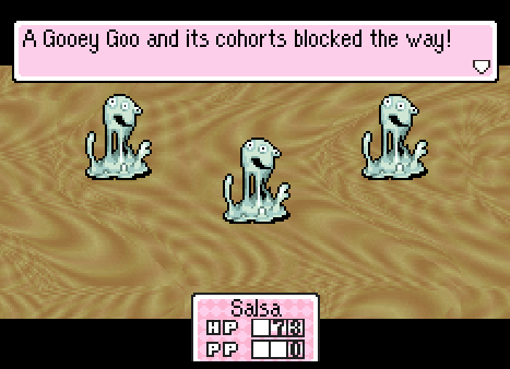 But really: this battle is nothing to worry about. I even went a few rounds without using the Running Bombs just to see what the slimes (or should I say, the Gooey Goos (look, I know that’s their real name, but it’s hard to take seriously, okay?)) were capable of, but outside of spraying digestive fluids all over Salsa (gross), they weren’t able to do anything too devastating or dangerous.