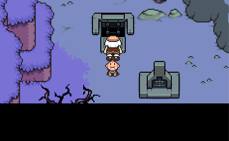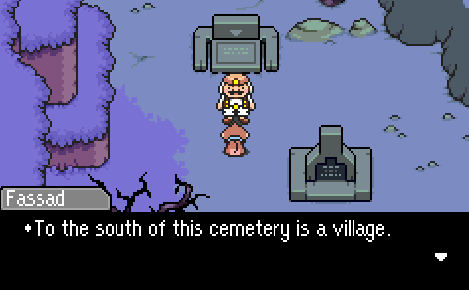 Even though not much happens in the graveyard, I think it’s cool to simply “be” in this place with new, somewhat out of place characters. I can’t tell if it’s sacriligious or honorable to be visiting Hinawa’s grave, though, considering Fassad probably had an indrect hand in the whole Mecha Drago fiasco, I’d say it borders on sacrilege.