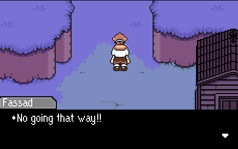 I also decided toavoid combat in my revisitation of the graveyard. I wasn’t feeling it. Sue me! I mean, I fought a zombie dog so I could listen to “Fate” again, but other than that, I minded my own business, paid my respects at Hinawa’s, and headed North to Osohe Castle, only to be promptly electrocuted by Fassad because I’m not allowed to go that way.