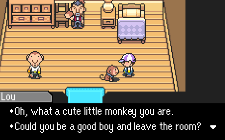 I also think Salsa’s abuse could have factored in as a “detective” element. As the detective main character, perhaps Itoi would have subtly encouraged players to be suspicious of Fassad. If you followed him around enough, you’d eventually see him shocking Salsa when the monkey disobeyed. This would prove the player’s suspicions that Fassad is a facade: there’s something evil he’s hiding.