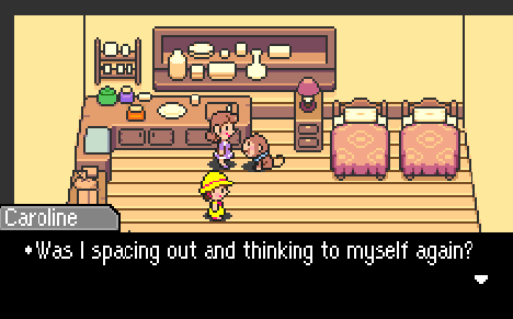 And it’s also possible that, in typical Itoi fashion, there is no metaphor at all, no meaning, and these are Happy Boxes, just like he says. Maybe they are little fish tanks, with sea monkeys inside. In the same way that the many characters of Mother 3 project their own meaning onto the Happy Boxes, so do we as the player. Personally, I’ve always liked thinking of the Happy Boxes as not-quite deliberately hypnotizing devices, but something in the realm of a hypnotic experience. Everything about the box calls your attention to it: the pink shell, the flashing screen. I’ve always interpreted them as very odd decorations that people get tricked into thinking are valuable.