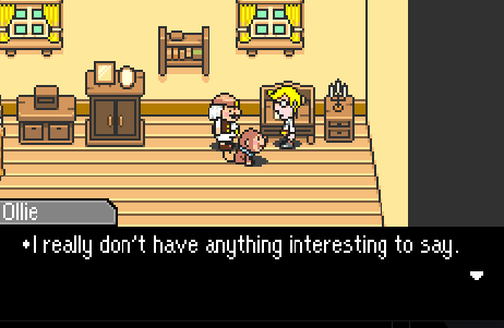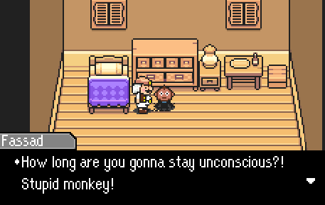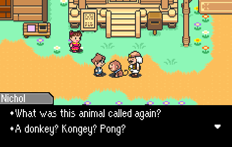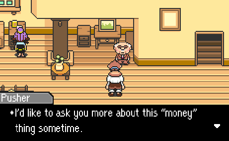 At least there’s still some humor to be found! The best part of going to Pusher’s house is how both he and his wife, Elmore, tell Salsa to “Shake!” as if he is a dog. I don’t know why, I just thought this was funny. But seeing as how Pusher also briefly mistakes Salsa for a little boy, maybe it’s possible that the mayor of Tazmily can’t see too well out of those glasses. Maybe he doesn’t need money for his own greed, but for Lasik surgery! We are always so quick to judge, aren’t we?