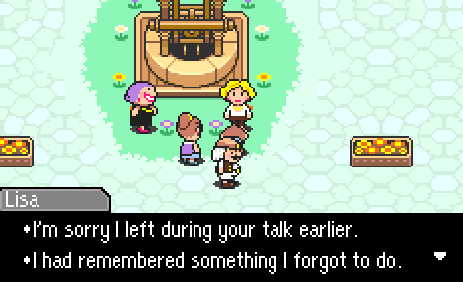 See, Tazmily, while simple-minded, hasn’t seemed like a complete herd mentality yet. Or at least, I wouldn’t expect one person to do something, like getting a Happy Box, just because someone else did. However, things get dicey when curiosity, politeness, and envy start to get all muddled up. Fassad probably only needed just one person to want a Happy Box in order to make changes around Tazmily, and, unfortunately, he managed to snag four.