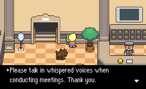 Okay I’m not saying this is groundbreaking comedy! But if you haven’t played around with this interaction in a while, then I highly recommend checking it out. I know that me explaining it in writing doesn’t do it justice, just as every joke dies as soon as someone has to explain it, but I just found this part of the game so charming and lighthearted and totally unexpected. I had no idea that there were quiet business meetings in Tazmily! I had no idea that people would actually follow the rule! It’s all just so sweet to me.