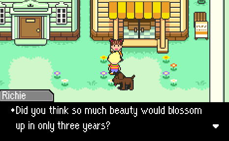 If I could add anything else before ending this post, it would be this: I really love walking around as Lucas and Boney. It feels so right to me. I always wished King could have been a bigger part of EarthBound’s story; I wanted a loyal dog at my side.