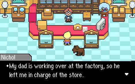 Running into characters like Betsy and Richie feels special among a sea of NPCs–even sad, as our old Tazmilian pals seem incapable of remarking on anything other than progress. With Betsy, it kind of fits–she was always a hard worker who wanted to see her inn do well by providing for its patrons. You’d think Richie, though, who grew up with Lucas as a child in this town, would have something to say to him, but no. She can be found outside her father’s store, the bazaar that once bartered, remarking vaguely on the beauty of advancement.