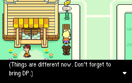 All I’m trying to say is, in Chapters 1 through 3, sometimes our Tazmily Theme Song could be anything from the excellent “Mind of a Thief” to the dour “Sorrowful Tazmily,” so it’s nice to have a consistent, upbeat song to listen to while playing. Just like how it’s nice to have a consistent, upbeat song in the supermarket while you’re spending all of your hard-earned DP.