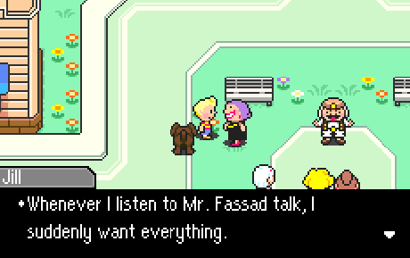 Jill and Lisa are even worse off than I thought. Jill flat out says that listening to Fassad makes her “want everything,” and Lisa posits that Lucas wouldn’t be so down in the dumps if he just got a Happy Box already. What is he waiting for? Thinking of others is nice and all, but considering your own Happiness is what truly matters.