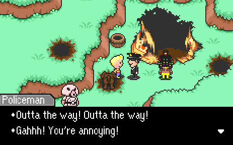 Of course, this situation also introduces us to Tazmily’s police force, which are just as ridiculous as the police from EarthBound. I have always loved the playful irreverence with which Itoi writes his cops. They are hilariously quick to anger and frustration, and they always seem to handle simple situations with an unnecessary amount of confusion and complication.